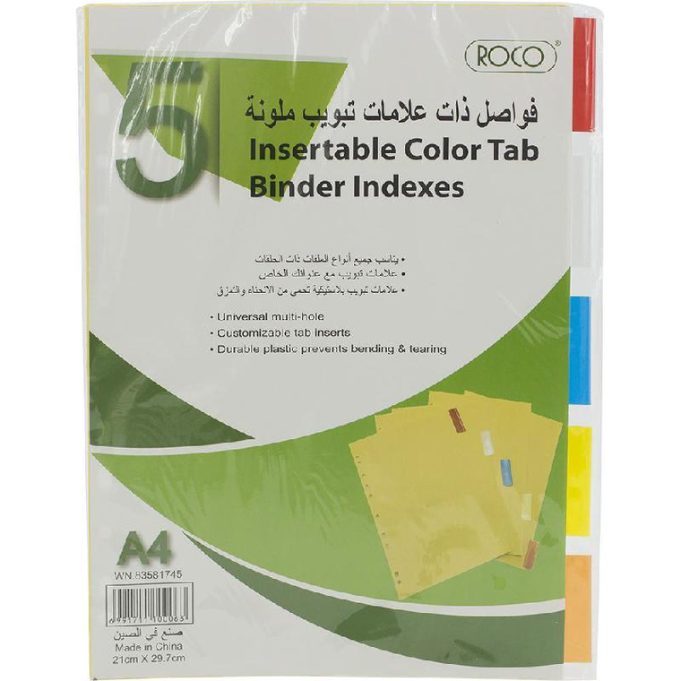 روكو Index Divider، A4، 5/علامات تبويب 1، علامة التبويب فارغة، الوان متنوعة، بلاستيك/ورق