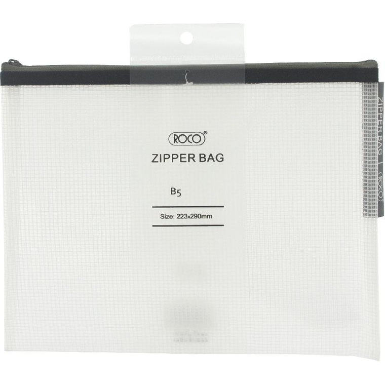 BAG MESH ZIPPER B5 BLACK, 29.00 CM X 22.30 CM / EA