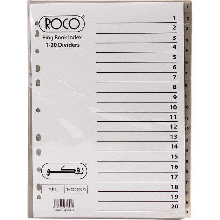 NDEX DIVIDER A4 1-20 GRAY / SET