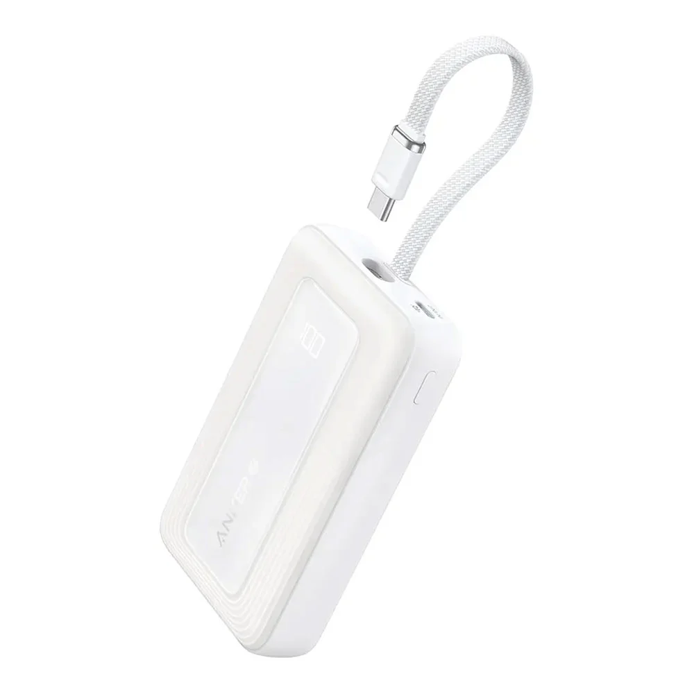 Anker Power Bank (20K, 30W, Built-In USB-C Cable) - White